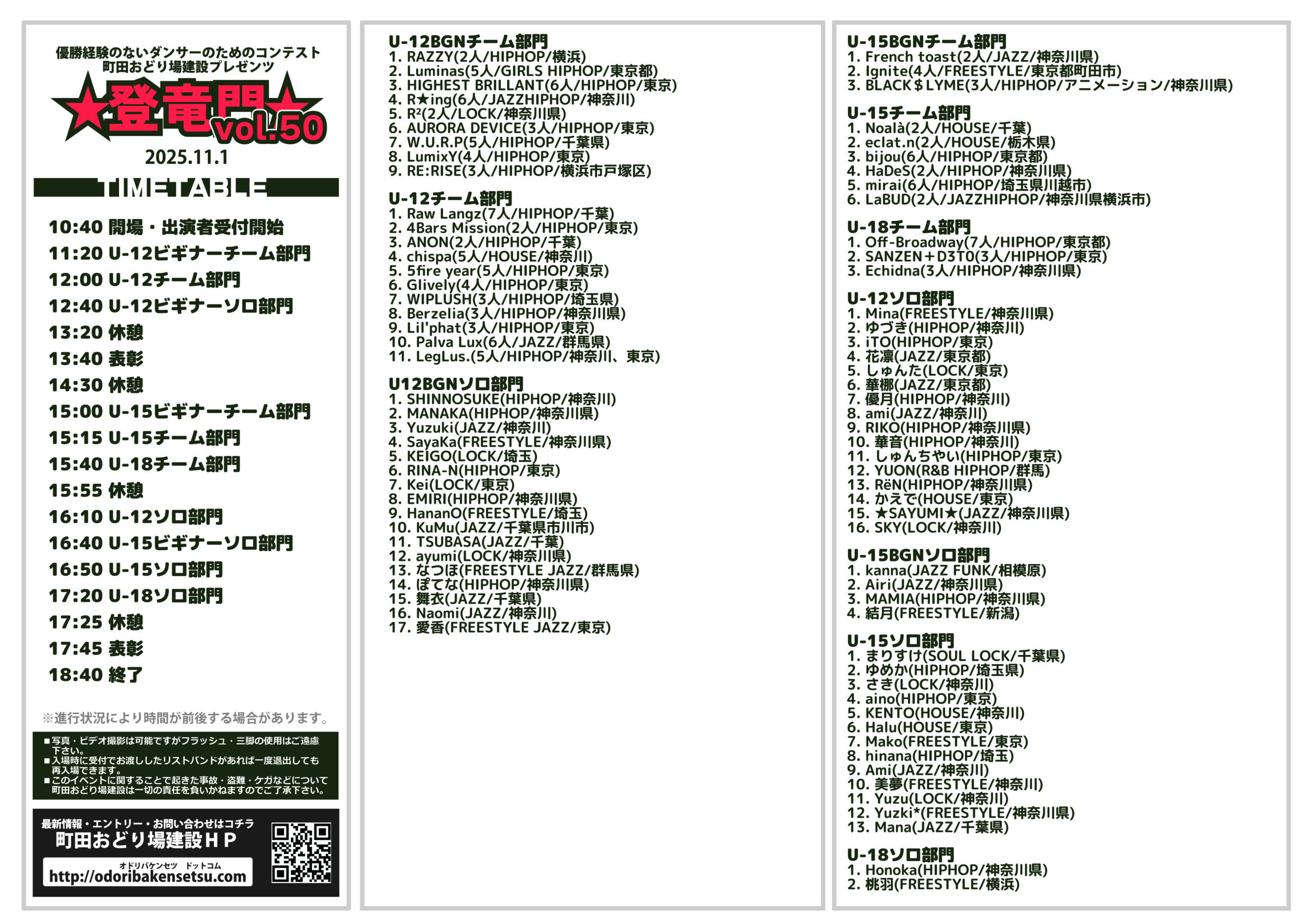 タイムテーブル・出演順