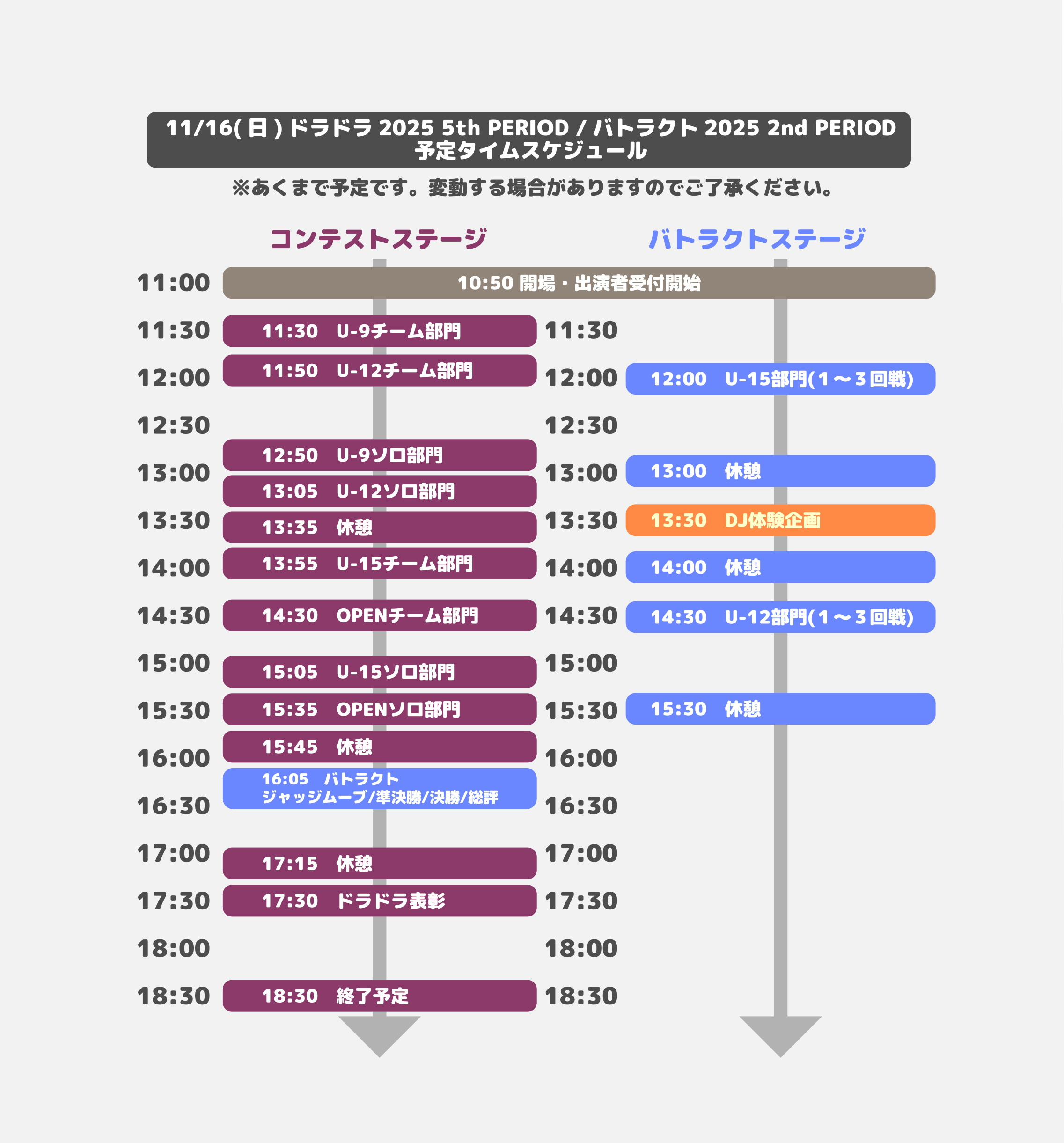 ※時間はエントリー状況や進行状況によって前後する場合があります。