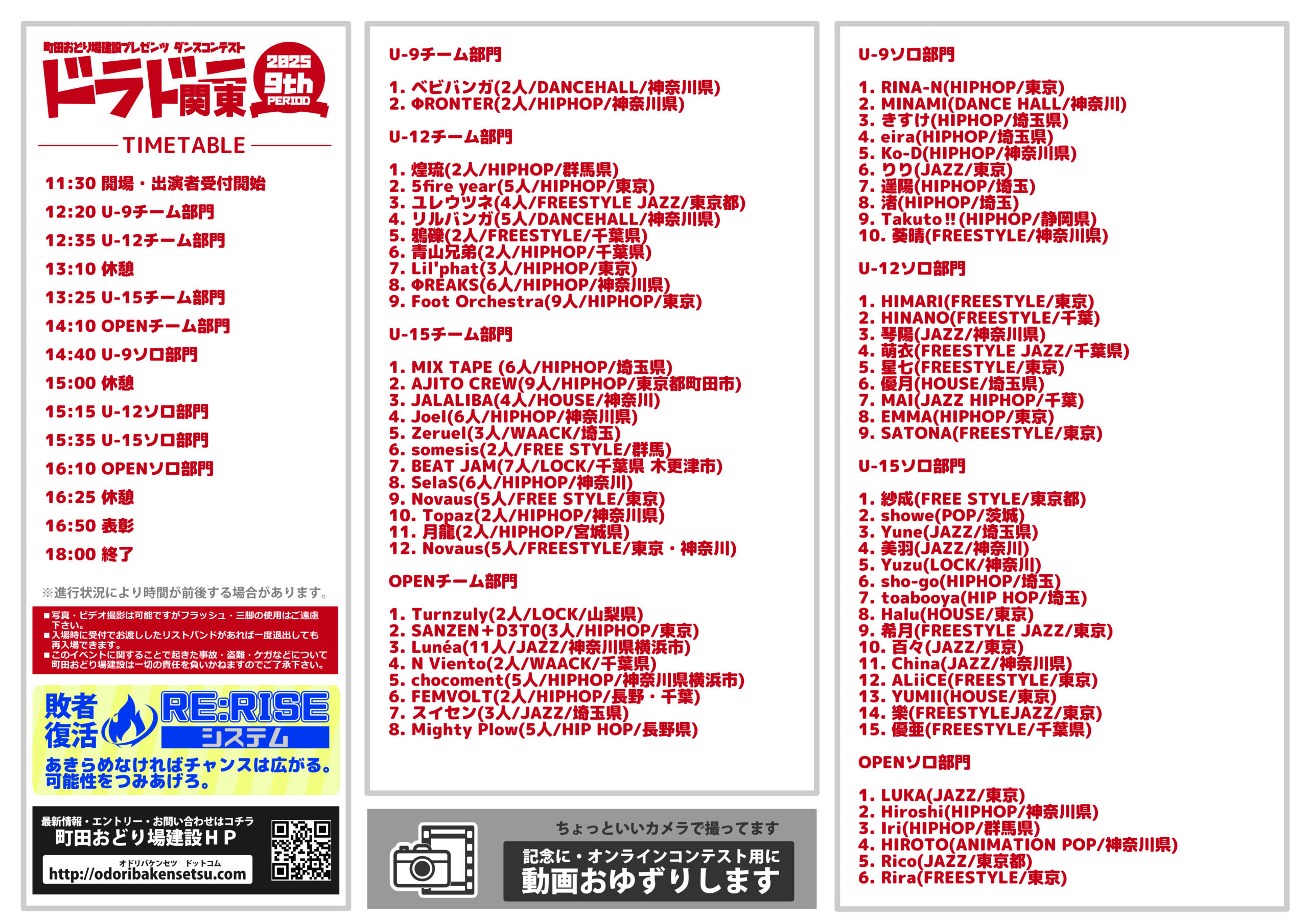 タイムテーブル・出演順