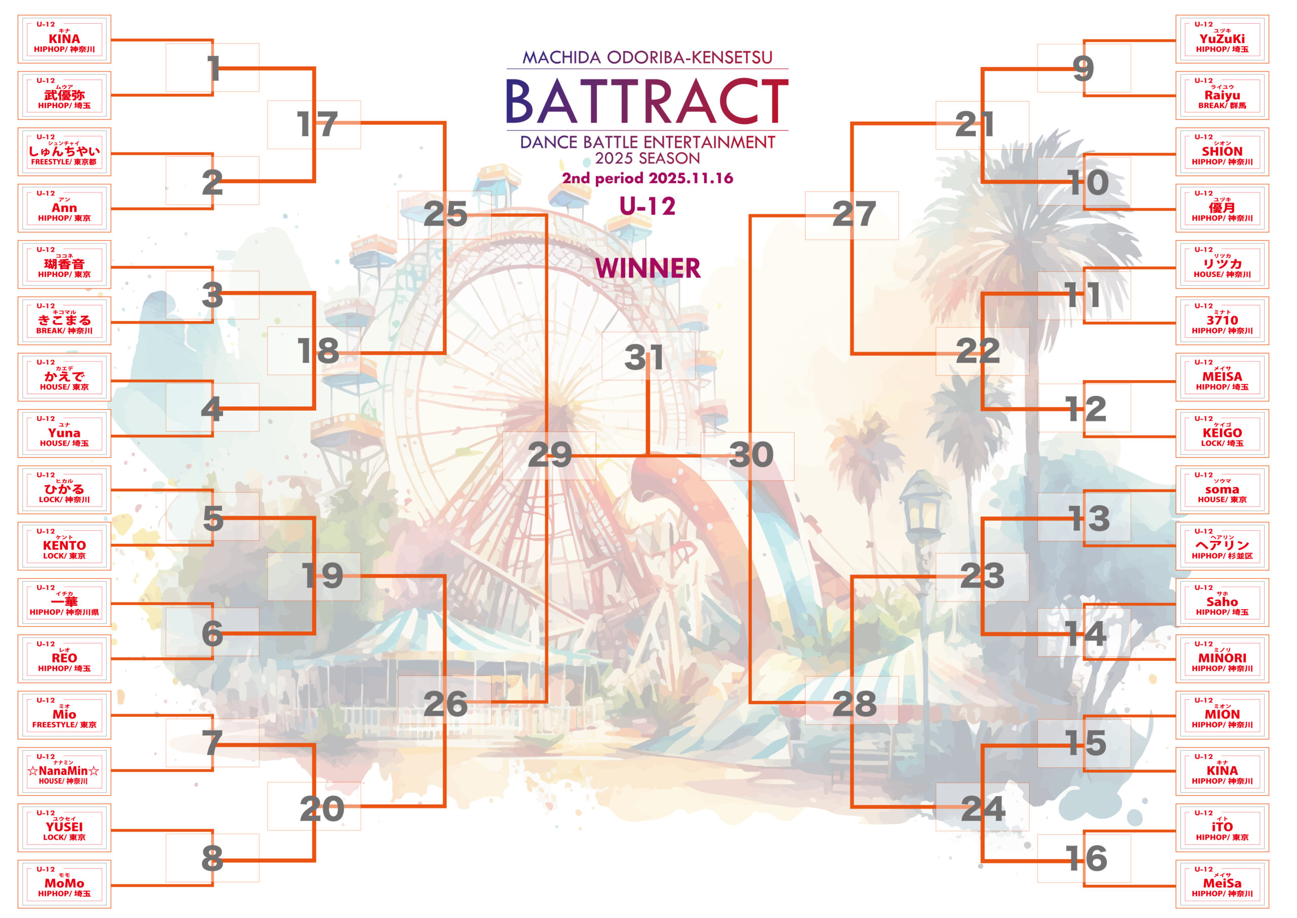 U-12部門→3回戦までバトラクトステージで行い、ベスト4以降はコンテストステージで進行